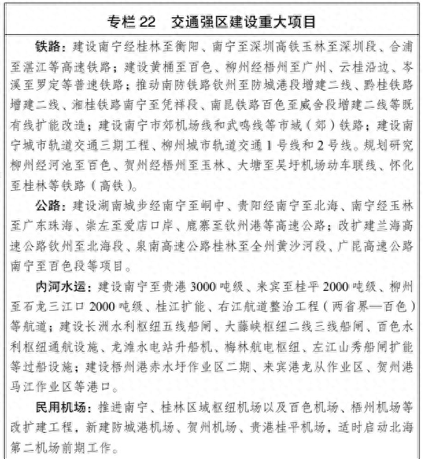 其二,怀桂高铁连通湖南和广西两地,可是就目前来说,湘桂两省对这条高铁都并不是十分重视,甚至可以说是持待定状态。广西方面而言,目前北上的通道主要是250km/h的柳南城际+200km/h的衡柳高铁和正在建设的350km/h的贵南高铁。在广西政府公布的十四五规划中,怀桂高铁仅作为规划研究项目,并且排在最后一位,而首提的竟然是南宁经桂林至衡阳的南衡高铁(时速350km/h),这说明尽管在目前广西能通过250km/h的柳南城际+200km/h的衡柳高铁连接京港高铁北上东进,可广西方面依旧不满足于现有铁路较低的速度。这也说明广西目前重视的高铁主通道依旧是老湘桂沿线。