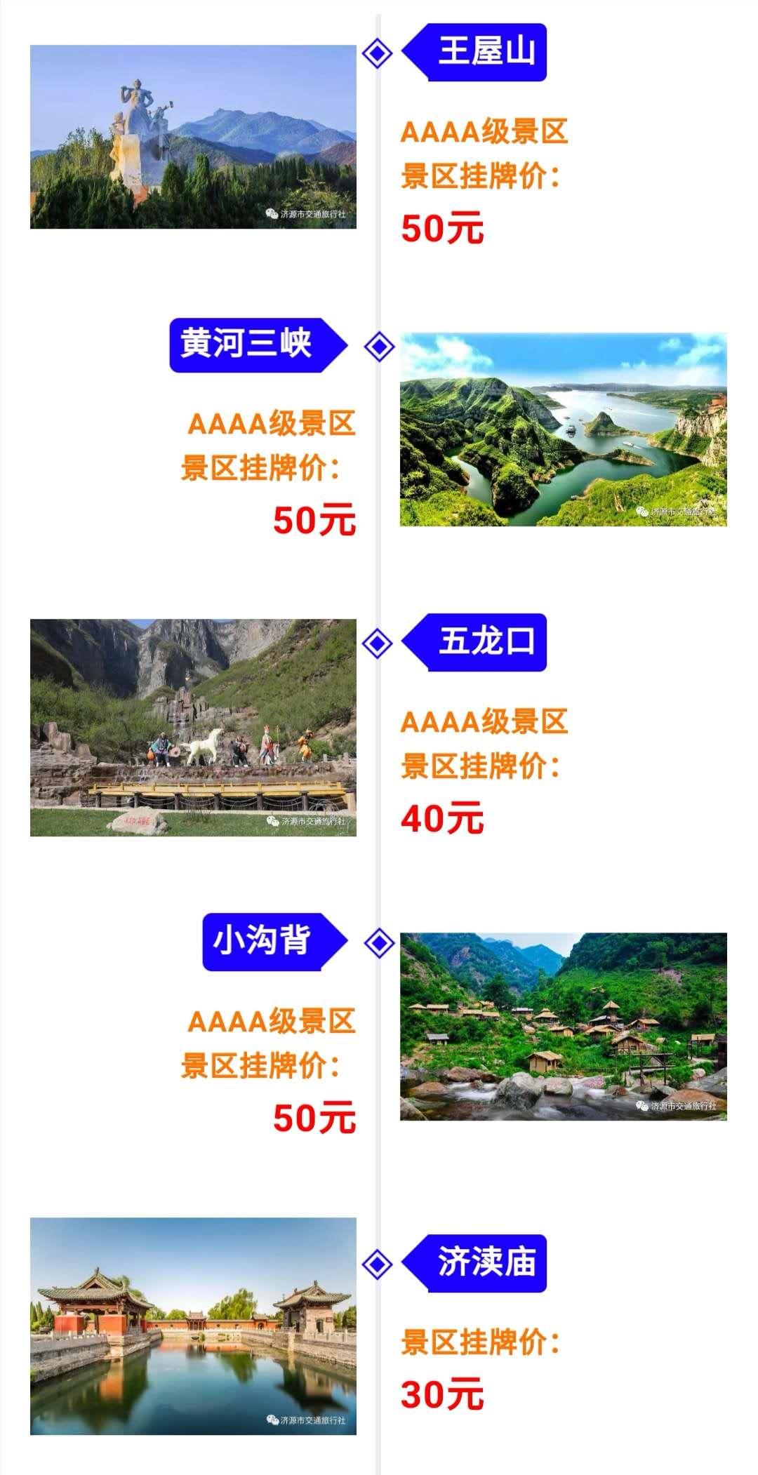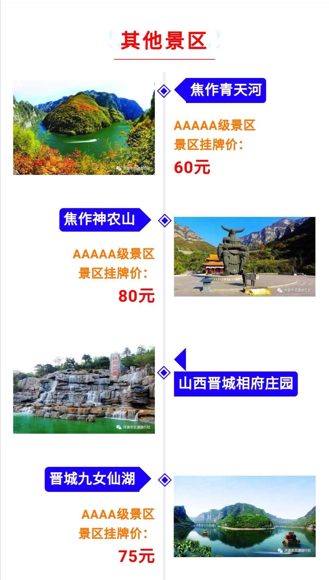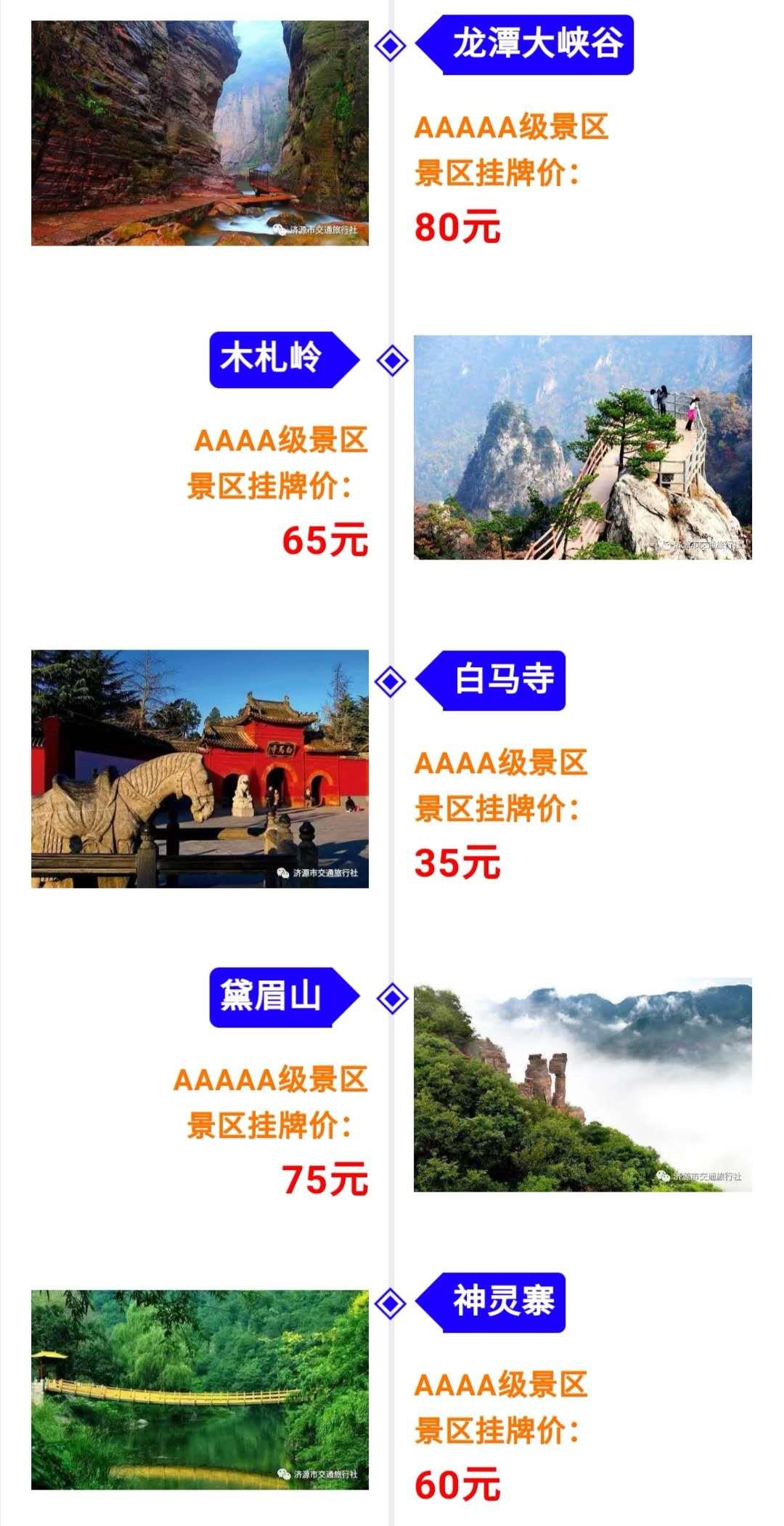 四、焦作市/济源市:青天河、神农山、济源黄河三峡、王屋山、五龙口、小沟背、济渎庙。
