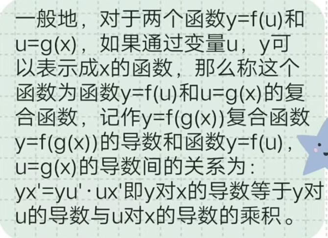 之前在复合函数的专题已经有讲过,可以把y=f(u)称为“主体函数”,u=g(x)称为“次级函数”,即对一个复合函数求导,实际上就是对“主体函数”和”次级函数“分别求导,之后再进行乘积。