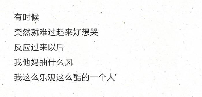 有时候 突然就难过起来好想哭 反应过来以后 我他妈抽什么风 我这么乐观这么酷的一个人