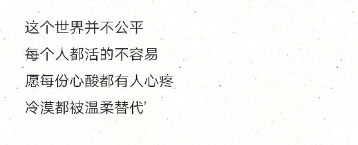 这个世界并不公平 每个人都活的不容易 愿每份心酸都有人心疼 冷漠都被温柔替代