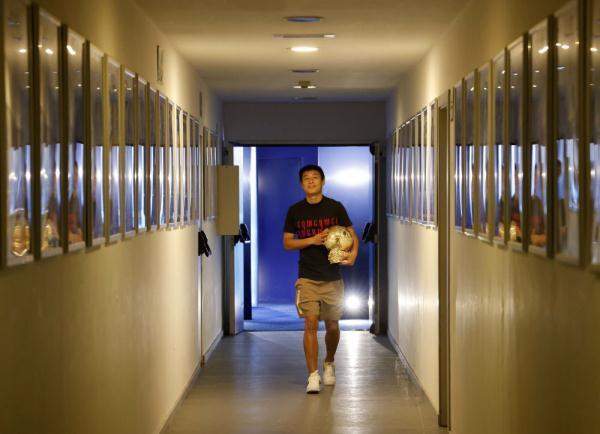 ↑8月11日,武磊走过西班牙人主场的一处走廊。