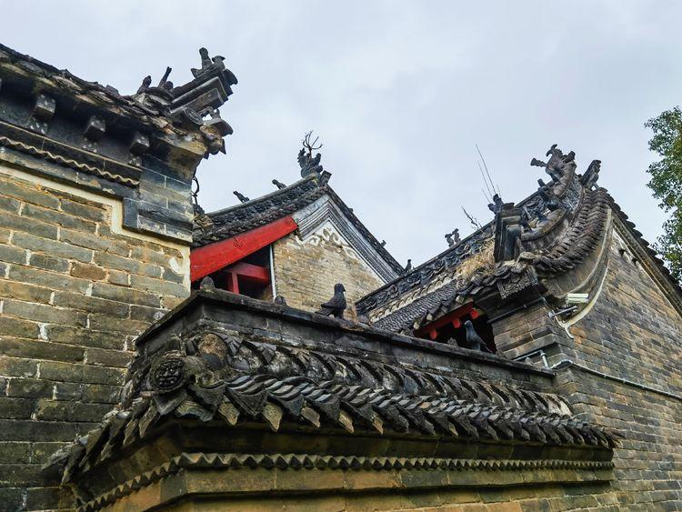 故居整体按中、东、西三轴线布局,分东、西三级纵深院落,且院落幽曲相连,形成一片完整且别具风格的建筑群,其建筑材料由传统砖瓦,木材,白灰等构成,反映了中国古代建筑特色。房屋顶脊之处,皆有狮、虎、豹、马、猴等砖雕,四角挑檐高耸,饰有龙纹兽尖,直指苍穹,气势恢宏。