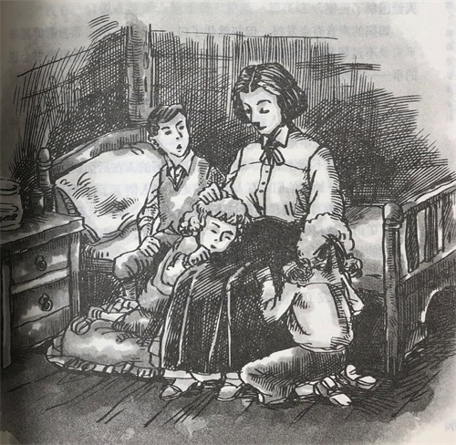 乡下房子的简陋超出了孩子们的想象,他们的生活经历里可从没有这些——他们如今很穷了!天气很冷,但他们买不起生火的煤;吃面包时也不能再像从前那样随心所欲地涂抹牛油或是果酱,因为他们买不起了。