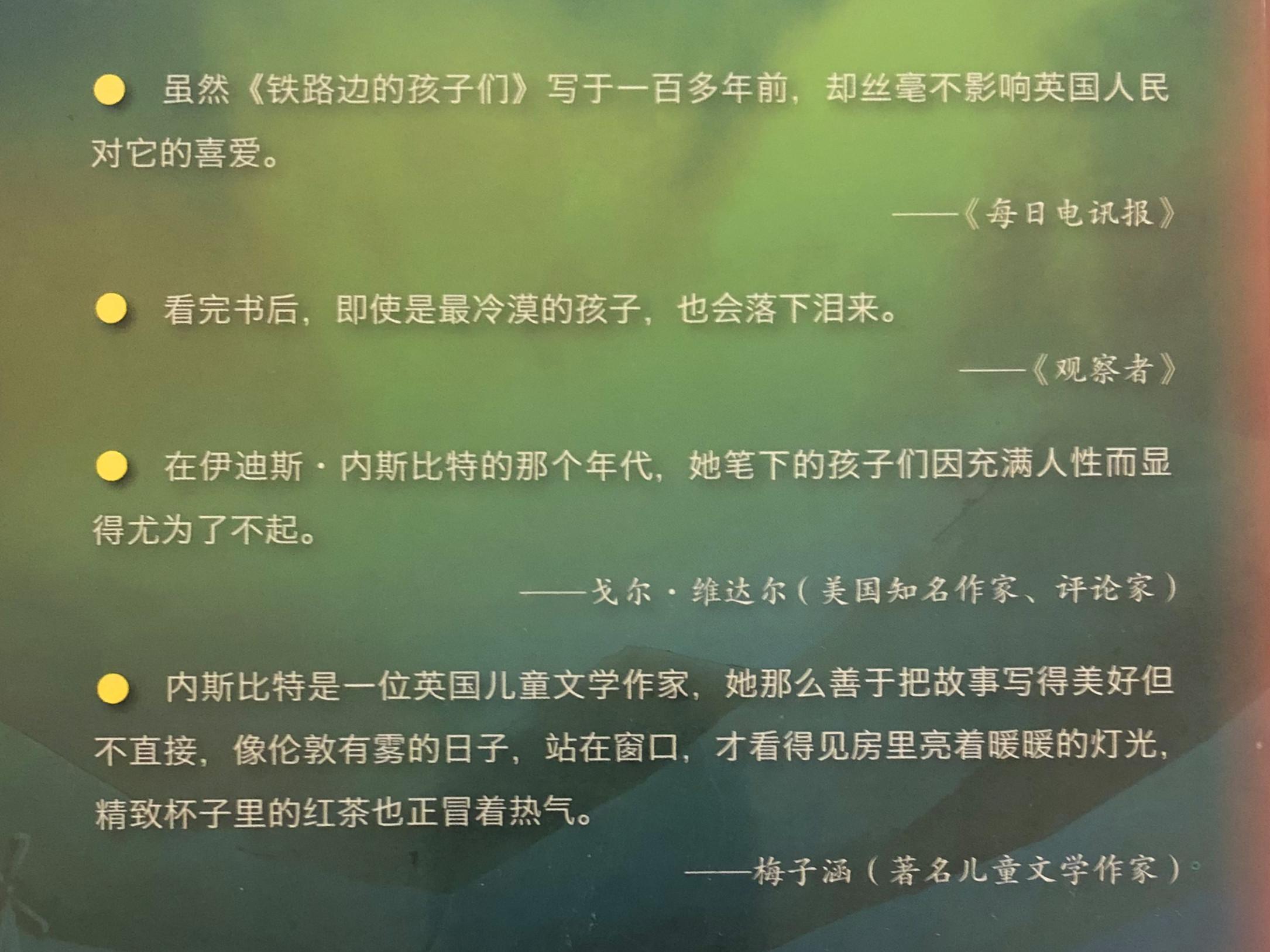 他们熟悉每一列火车会在几点经过,他们甚至注意到了某些乘客会固定乘坐某趟火车——例如那位相貌堂堂的老先生,他总坐在九点十五分经过的那趟火车上。那是通往伦敦的火车,它每天都会去往爸爸所在的城市。孩子们很想念爸爸,所以他们每天都会朝那趟火车招手,希望火车能将他们的爱捎给爸爸。