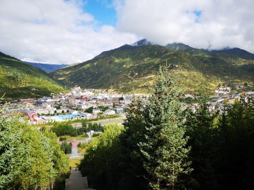 当然,在艰苦攀升的过程中,我也不会错过赏景!在各个阶梯的平台俯瞰川主寺镇。
