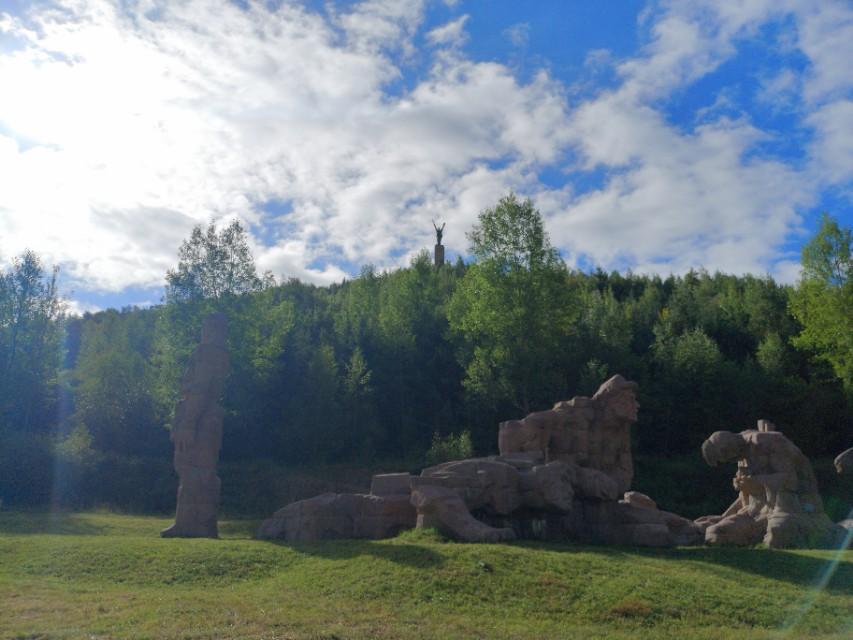 “艰苦历程”大型花岗石群雕,高12.5米、长72米、宽八米,由1440块红色花岗石组成,共1160立方米。