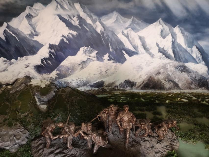 到达二楼展厅,俯瞰红军爬雪山、过草地的场景,着实震撼到心灵。