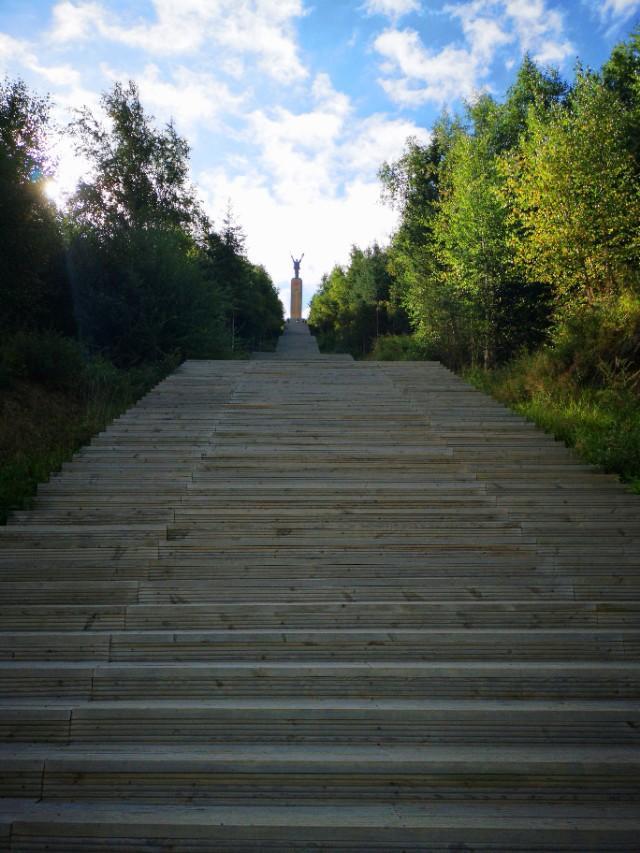沿着通向长征纪念碑主碑的台阶,拾阶而上。