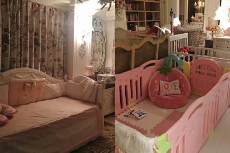 伊能静不仅为自己设计了美妆区,还给小女儿留下了一个专属玩乐区,其间摆放着粉色的桌子和粉色的小床,连玩具都是粉色的,整个空间充满了梦幻的公主风。