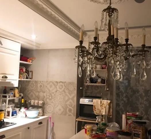 而卧室中悬挂着的古董烛台吊灯,也是伊能静等了两三个月才从法国运过来的。