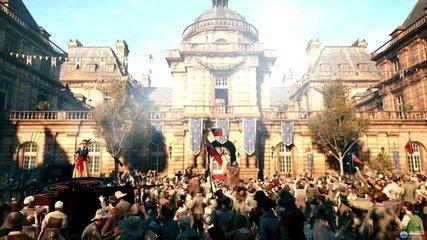 以大革命时期的法国为舞台,描写了为报杀父之仇的阿尔诺·多里安的故事。阿尔诺加入了刺客教团,但与他青梅竹马的贵族小姐埃莉斯·德拉塞尔却是一名圣殿骑士,俩人在复杂的种种关系之下投身战斗。本作中街道上的海量普通群众已经不再仅仅只是个摆设,互相之间有会所交流,并且对周遭的变化有所反应,这极大的增强了游戏的真实感。巴黎街道上的建筑物按照实际尺寸忠实还原,能看到到诸如巴黎圣母院等教堂内部的壮美景象。本作还第一次加入了多人合作模式。