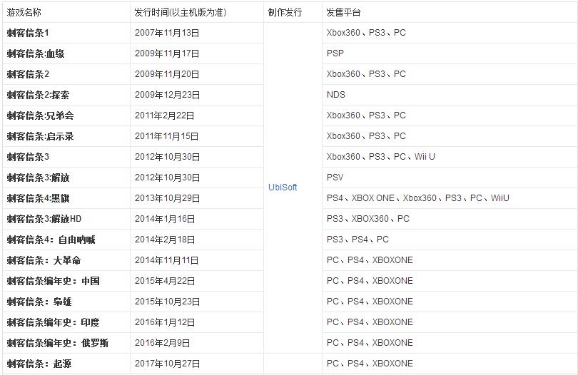 刺客信条系列大全