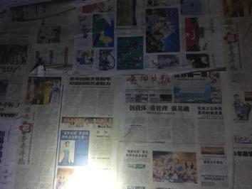 探访完这个集体员工宿舍,我们又摸进了一个小房间,里面有一台二十多英寸的大电视,在十多年前,这个电视是很值钱的,但为什么这么值钱的东西都没来得及搬走,还有女员工宿舍里的衣服还晾在床头,以及没有来得及带走的日记本,这些都是很奇怪的事情。小编是怎么知道这个楼是在十多年前的事情的呢?因为在放电视机的房间里,墙上贴了很多报纸,比如大家在图中看到的贵州日报,因为我以前也在报社呆过,所以对报纸很敏感,我看了报纸右上角的日期,大约在2007年到2008年之间,也就是说,之前传言的茅台大厦空置20多年,肯定是无稽之谈,没有人会拿放了十多年的报纸来贴墙的。