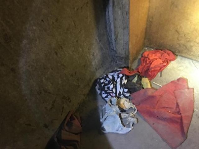 我们从地下车库的一个门进了大楼,进口处,堆的乱七八糟的东西,我们进去后,发现一条好长的楼道,注意,是只有楼道,没有门,也没有窗户,周围一片黑漆漆。我们就那样爬了大约四层楼的楼梯后,发现一堆女士的衣物,两个兵哥哥有点害羞,我去仔细看了一下,有一双黑色高跟鞋,分别仍在不同位置,还有女士内衣等。这些东西的摆放位置和形状,这些衣服一看就是直接从女生身上脱下来的,你可以看着图,再联想下你们平时睡前脱的衣服。那么,当时一定是有一个女生把衣服脱在这里的,那么,那个女生人呢?茅台大厦里面那么大,也许被人藏在哪个角落了吧。