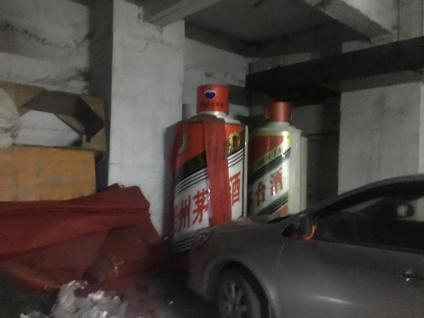 停车场内,有几个特别大的茅台酒瓶,估计是之前遗弃的。