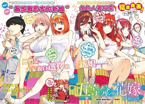 通过以上几个理由,我们可以认定五月成为最后的新娘的概率是非常大的,但是漫画编辑需要照顾读者的感受,也就是市场,也会和读者进行深刻交流,2018年10月20日,该作品进行了一次人气投票,最终赢家是三玖,以2393票近乎碾压的优势压倒了其他姐妹,所以说市场上是很认同三玖的,至于作者怎么想那就不得而知了......
