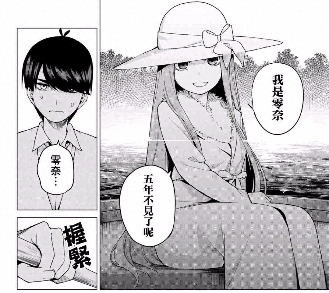 在后续的漫画里,透露了风太郎之努力学习的原因其实是因为五年前遇到了零奈,可以说是初恋的记忆吧,而在风太郎情绪低落的时候,照片里的零奈再次出现在风太郎面前救赎他。