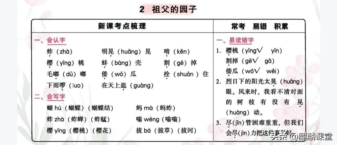 各位家长、同学们,今天为大家带来五年级语文下册第二课《祖父的园子》的课文笔记。