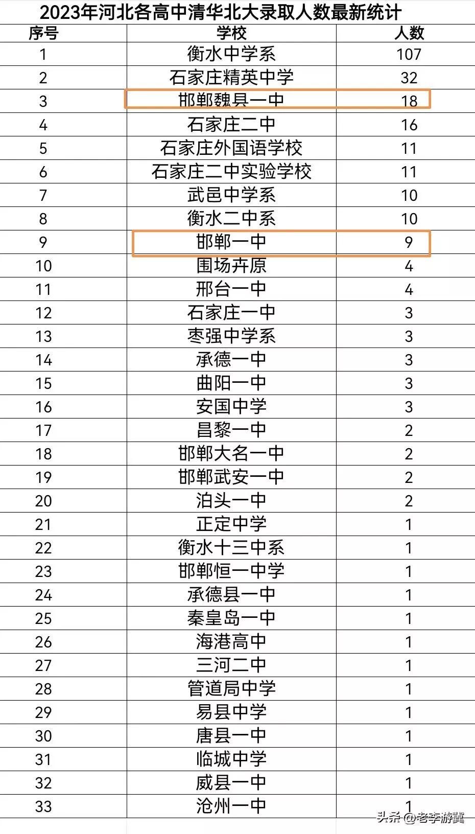 2023年,18名同学被清华北大录取,同时还斩获了邯郸市理科状元;