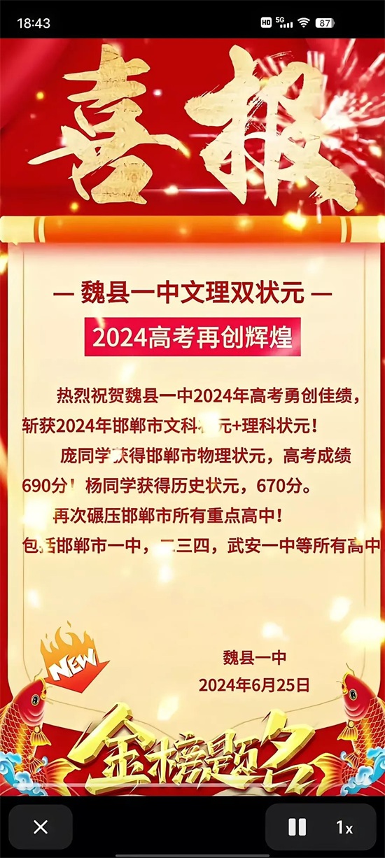 2024年,高考填报志愿进行时,录取工作尚未开始,但魏县一中却捷报频传,不仅斩获了邯郸市文理双状元,已有10学生被清华北大预录。