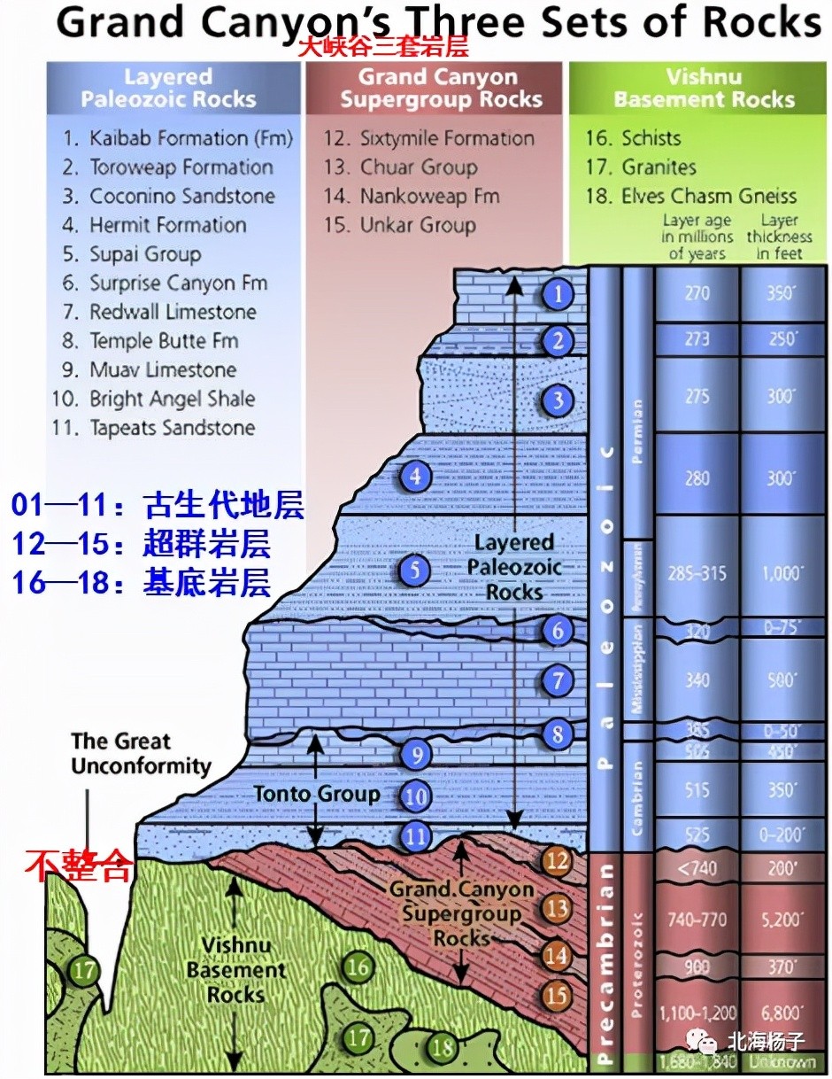大峡谷地层厚度及地质年代图