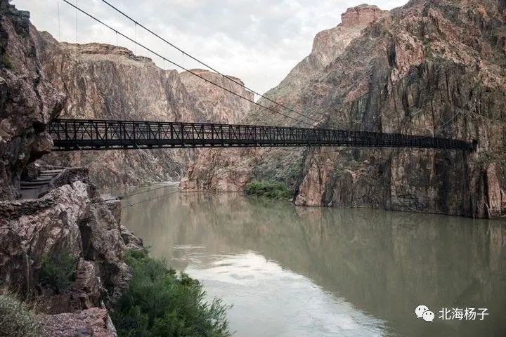 最后会抵达科罗拉多河河畔,这里有一座横跨科罗拉多河的步行桥,称作黑桥。这座桥1928年建成,一百多米长,两头都是悬崖桥。