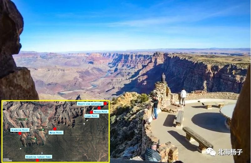 此处海拔2256米,可俯瞰大峡谷从西往东的延伸以及科罗拉多河的蜿蜒。 在这里能够看到大峡谷的全景,更可以好好欣赏大峡谷的细节。