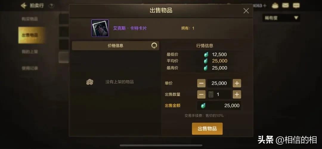 与买家谈妥价格后,可以收取一些定金。收到定金后,将卡片上架至拍卖行,并做好截图记录。
