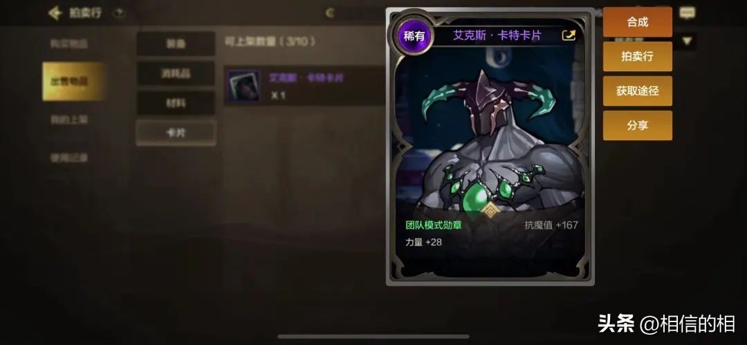 有些玩家在拍卖行守候一周,可能只有在每周一遇到不熟悉市场的玩家时,才有机会购得这张卡片。