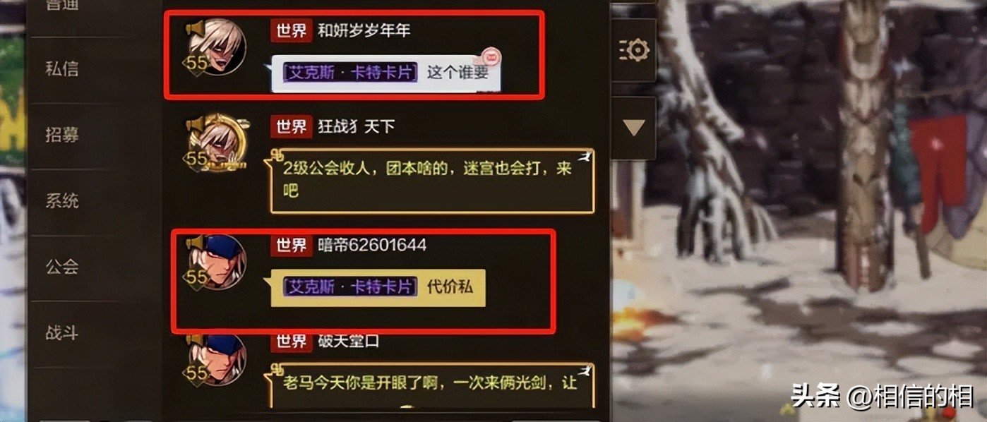 了解这张卡片价值的玩家,会在世界窗口中喊话,寻找潜在的买家。