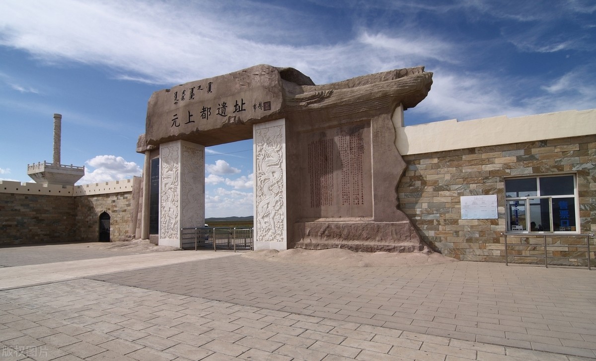 2. 内蒙古锡林郭勒元上都遗址:地处内蒙古自治区锡林郭勒盟正蓝旗上都镇,在闪电河畔金莲川草原之上,南临上都河,北依龙岗山。开始建设于蒙古王朝的宪宗六年也就是公元1256年,总占地面积高达250平方千米,是中国历史政权大元王朝的第一个首都遗址、是蒙古王国和大元王朝的文化的发祥地,蒙元王朝政治、经济、文化、宗教及对外交往中心,主要由宫城、皇城、外城、关厢等遗存组成,以宫殿为中心,呈分层、放射状分布,是古代城市规划与生态文明建设结合的突出代表。现存城墙底基宽11米,顶宽3米,存高约为5米。外城共辟有四门,四周围绕有护城河建有遗迹。在1988年2月26日,被中华人民共和国国务院公布为第二批全国重点文物保护单位并且在2012年7月9日,被联合国教科文组织列入世界文化遗产名录里,在全世界进行推广。