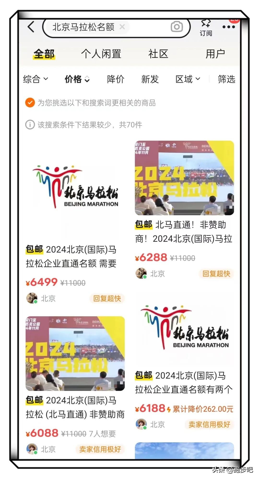这些名额贩子通过自己的关系渠道获得了若干赛事直通名额,通常,这些名额来自赞助商、媒体以及相关机构的资源置换,然后他们在微信、闲鱼、转转等平台进行加价交易。赛事的中签难度和关注热度直接影响着倒卖名额的价格,以往北马名额有炒到过2000元以上,接近于北马公益名额2000元,但是没想到今年的价格竟这么丧心病狂,是200元报名费的30多倍,不知哪位土豪会去购买。