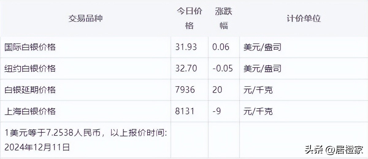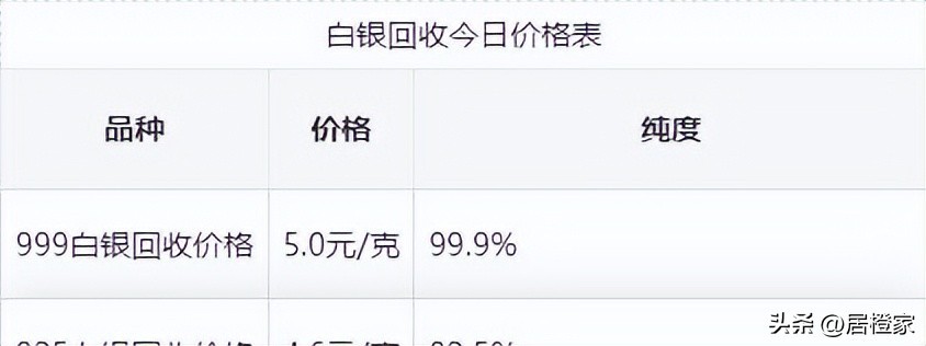 银子回收价格现在多少钱一克?2024年12月11日白银回收价格行情表: