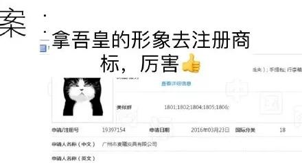 而侵权方,前脚事情败露,没过几天就拿吾皇形象去申请注册商标了。