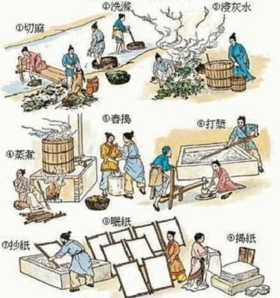 他挑选出树皮、破渔网等那些破破烂烂的东西,让工匠们把它们切碎剪断,放到一个大水池中浸泡,过了很长一段时间,等到那些杂物全都腐烂了,而那些纤维们却不容易腐坏,于是纤维就保留下来。