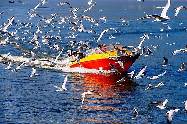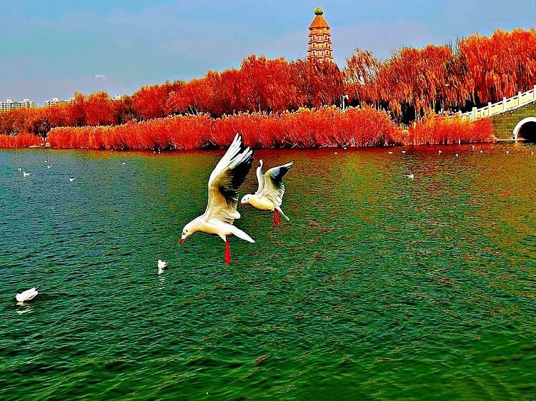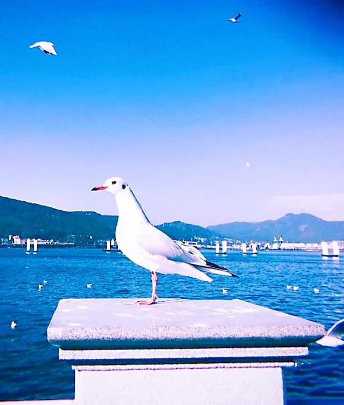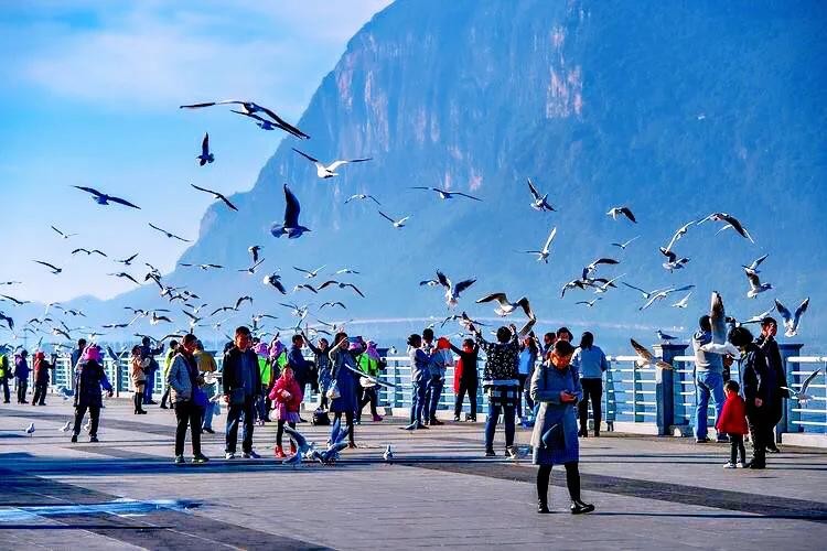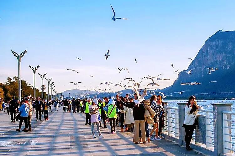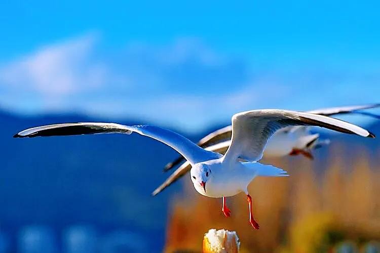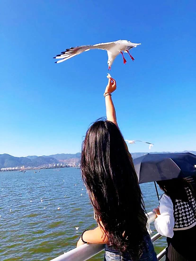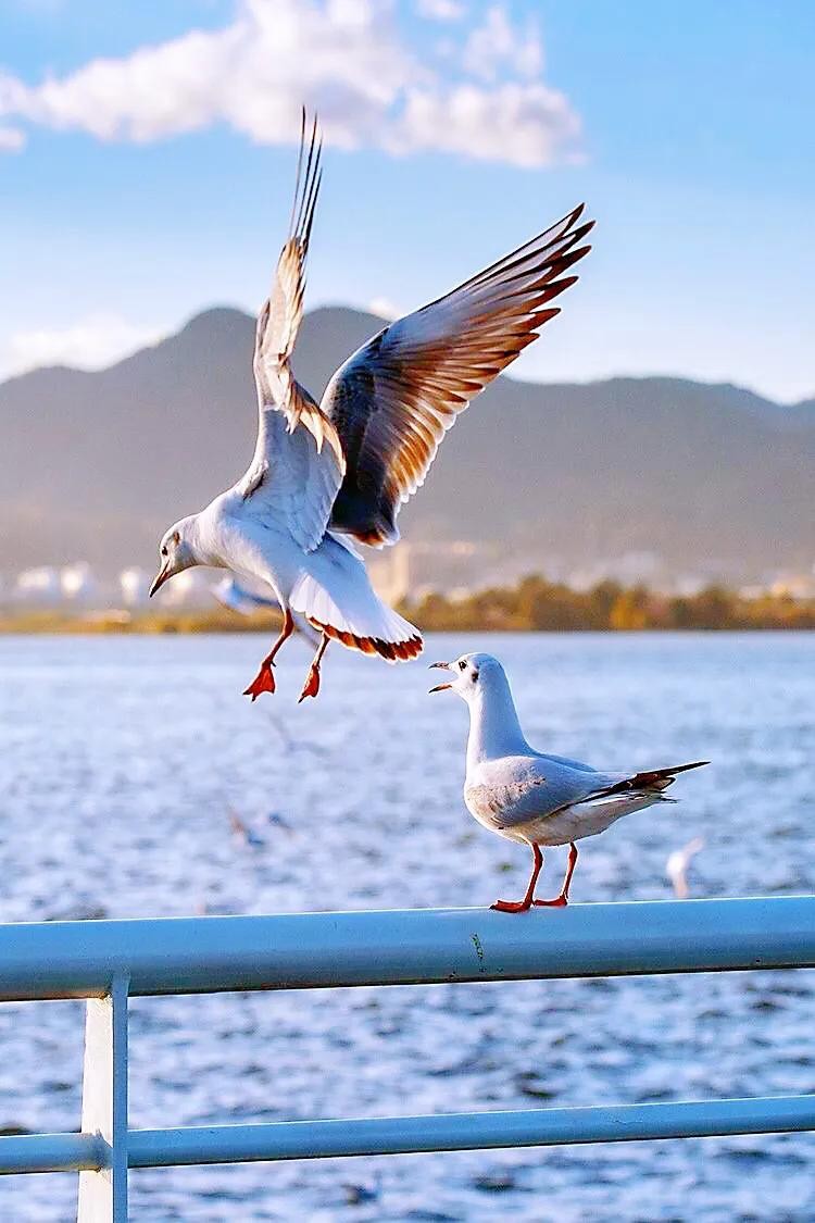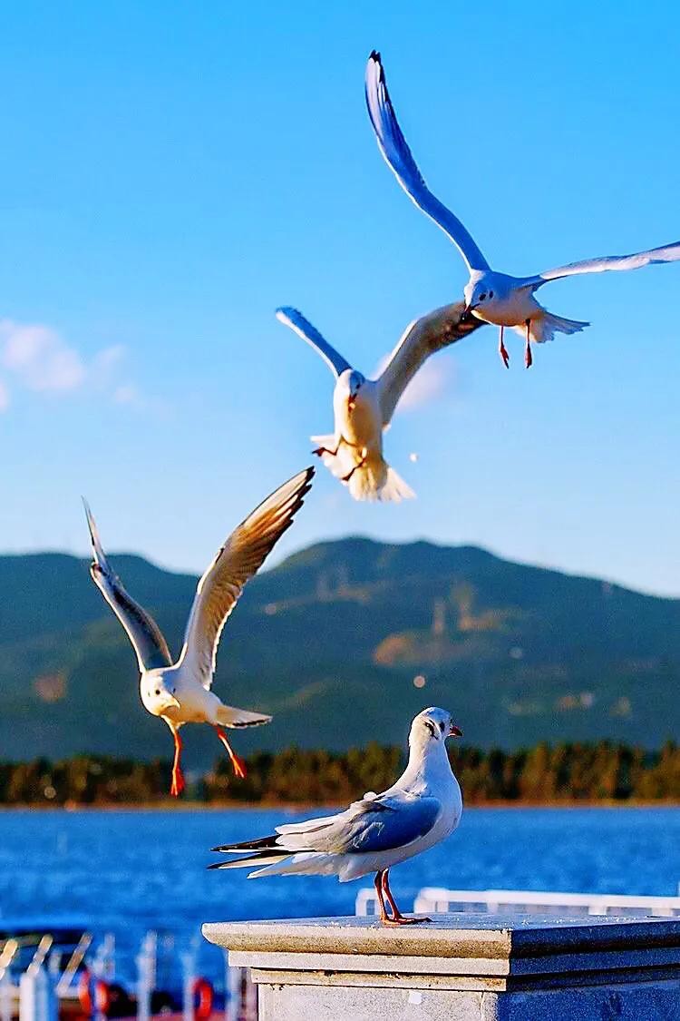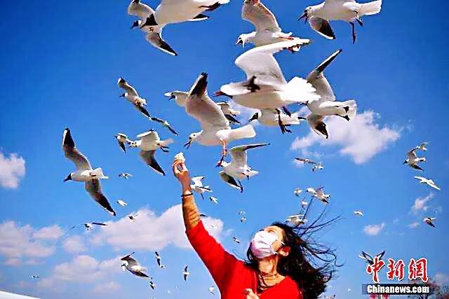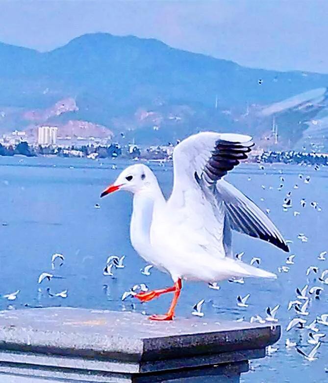 每年11月飞往昆明,来年3月返回原地。数以万计的红嘴鸥在湖西上游弋翻飞,成为滇池的一道亮丽的风景。