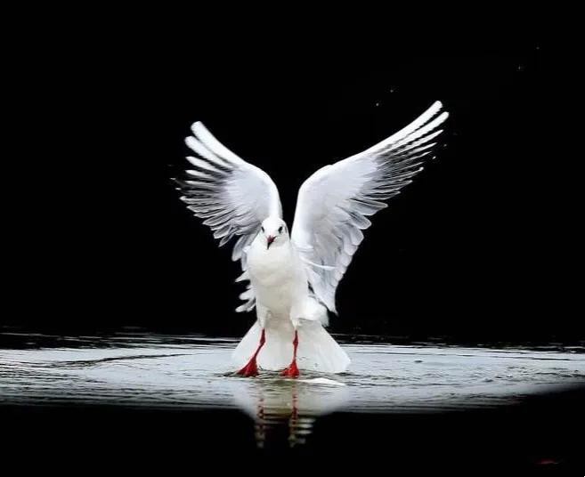 红色的嘴,红色的脚,白色的羽毛,矫健的身姿,展翅飞翔时,犹如翩翩起舞的白衣天使。