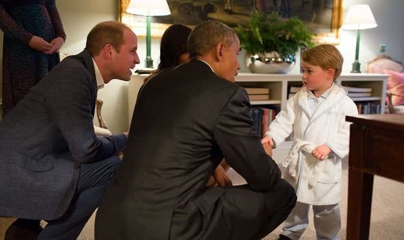 2016年,米歇尔与巴拉克·奥巴马去肯辛顿宫做客,3岁的乔治小王子穿着小睡衣会客。