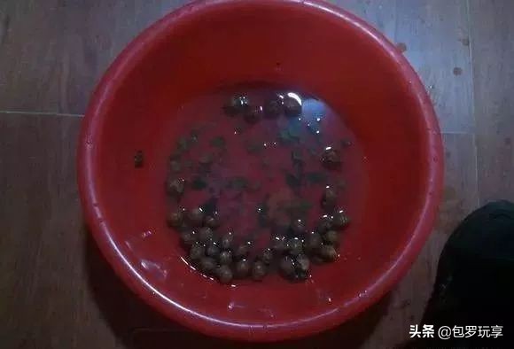 捡回来的桃核由于在山上经历风吹日晒,表面会有一层坚硬的果肉残留。所以我们需要先用水将他泡发,这样有便于清理。