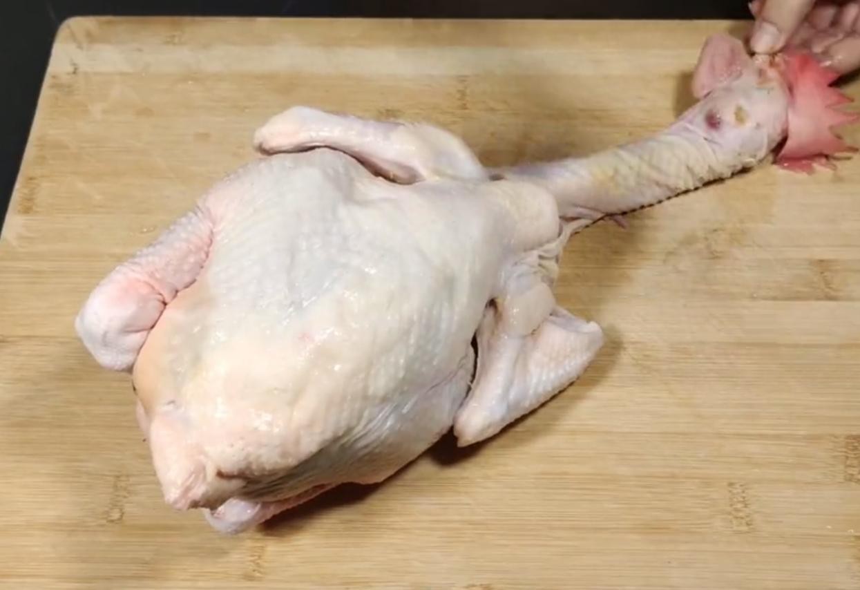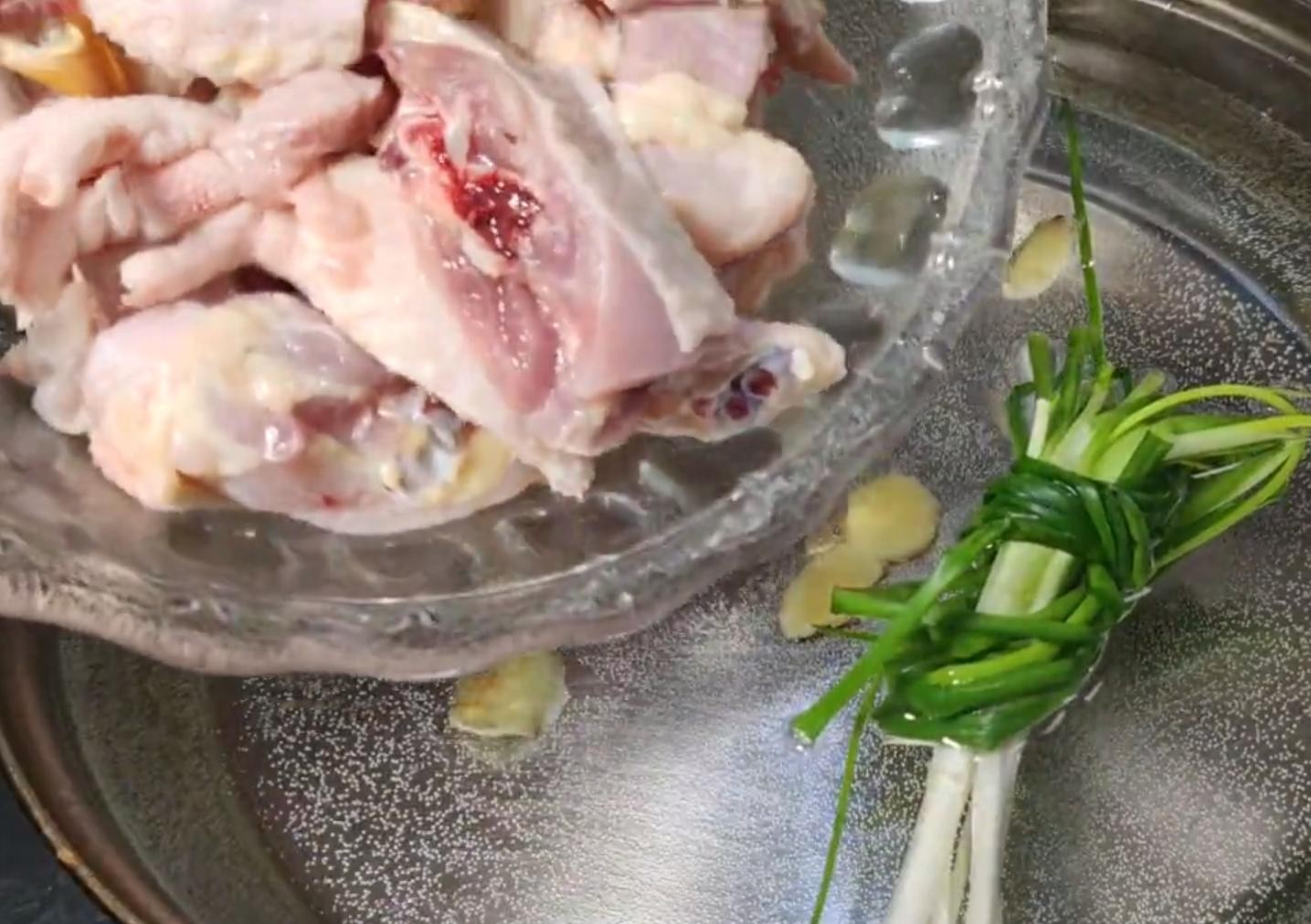 1、将准备好的公鸡去掉内脏并清洗后,放盘中备用。