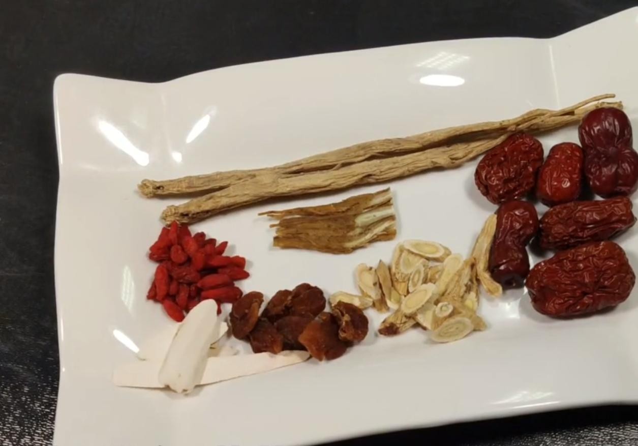 食材准备:新鲜公鸡1只、红枣、党参、姜、黄芪、枸杞、桂圆、当归、山药、食盐