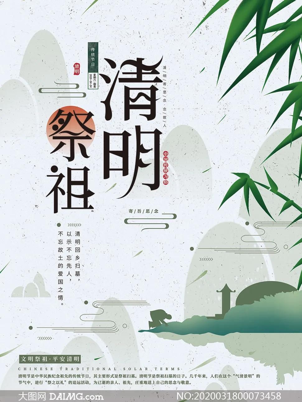 清明节,又称踏青节、行清节、三月节、祭祖节等,是中华民族古老的节日,也是最重要的祭祀节日之一,是祭祖和扫墓的日子。其起源可追溯至上古时代的祖先信仰与春祭礼俗,兼具自然与人文两大内涵,既是自然节气点,也是传统节日。
