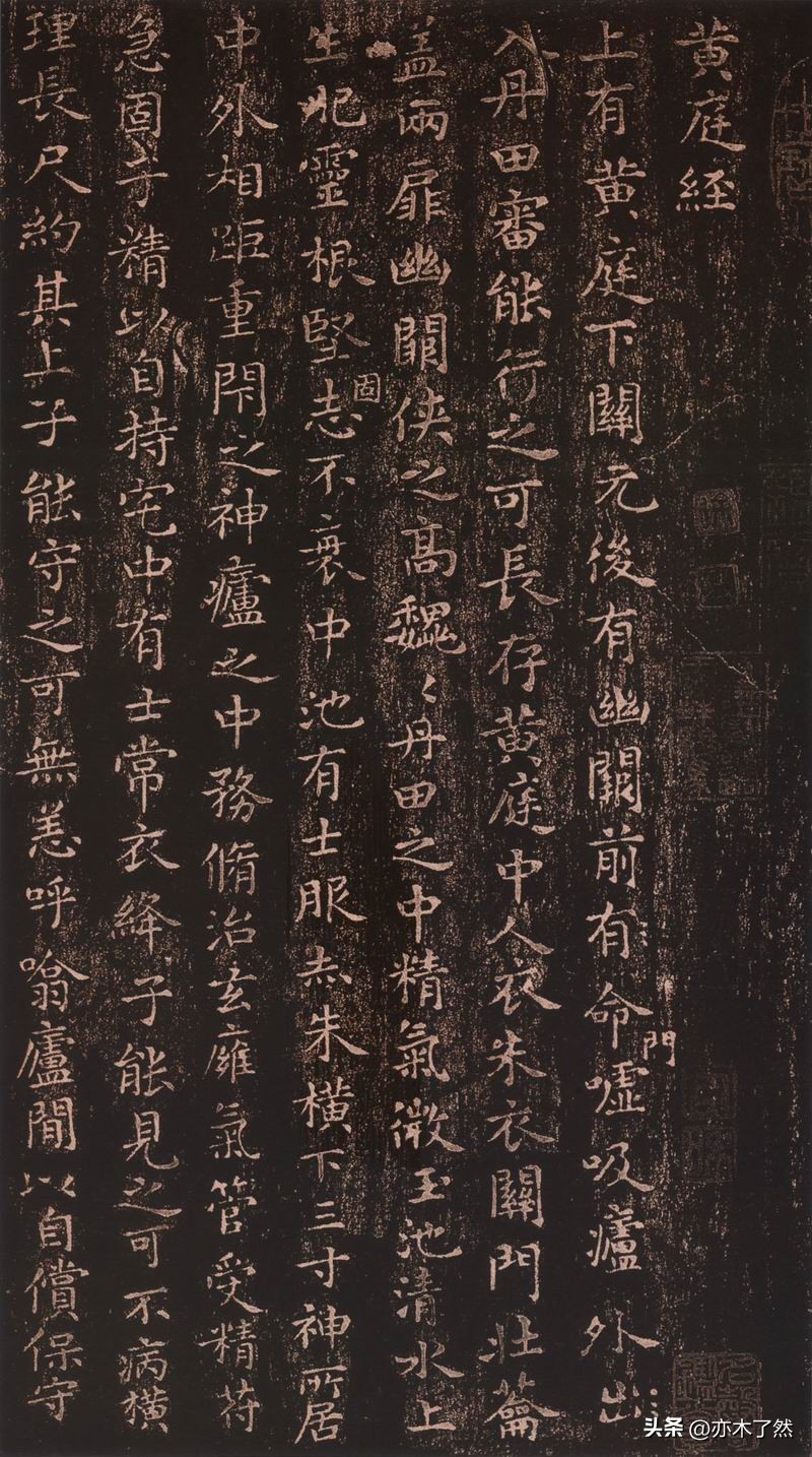 “ 黄庭”指的是王羲之写的小楷作品《黄庭经》。关于这部作品有个传说:山阴有一道士,想得到王羲之书法,因知其爱鹅成癖,所以特地准备了一群又肥又大的白鹅,作为写经的报酬。王羲之看见鹅后很喜欢,欣然为道士写下了经文,高兴地“笼鹅而归”。原文载于南朝《论书表》,文中叙说王羲之所书为《道》、《德》之经,后因传之再三,就变成了《黄庭经》了。因此,《黄庭经》又俗称《换鹅帖》,现在流传的只是后世的摹刻本了。