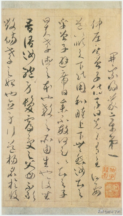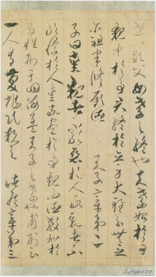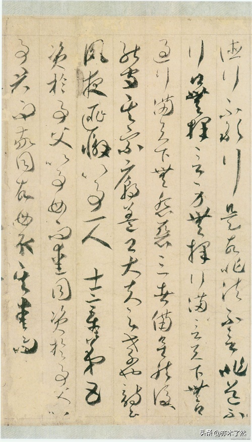 贺知章草书《孝经》,高26厘米,长265.1厘米,纸本墨迹,每行四字至十六字不等,共一千余百余字。现收藏于日本宫内厅三之丸尚藏馆。这幅书法作品用笔酣畅淋漓,粗细错落有致,整幅书法作品一气呵成,如同流水潺潺一般,涓流不绝。从字里行间,可以仔细体会贺知章娴熟的运笔技法和深厚的笔力。
