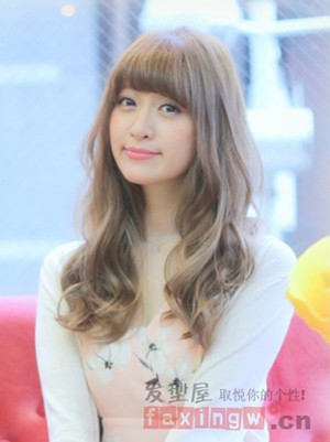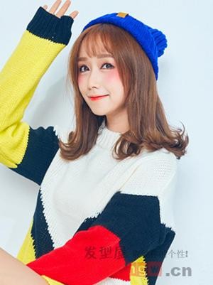 寒冷的冬季,妹纸们可以自然披散头发哦,这款棕色系的齐刘海披肩烫发发型,搭配白皙圆润的甜美笑脸,自然修颜,时尚更保暖。