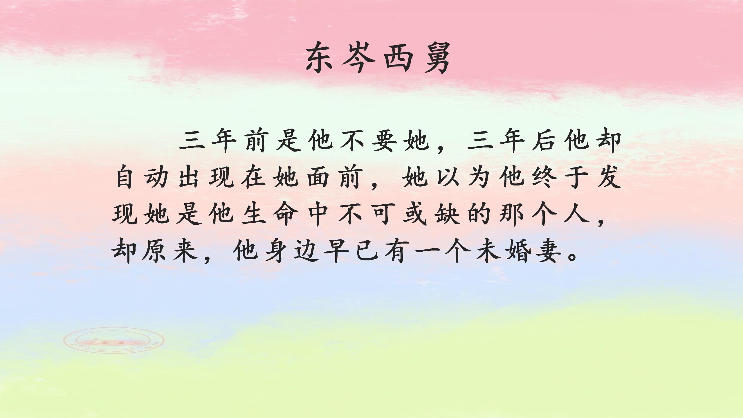 男主藿莛东,深不可测型,女主岑欢,明亮才女型。