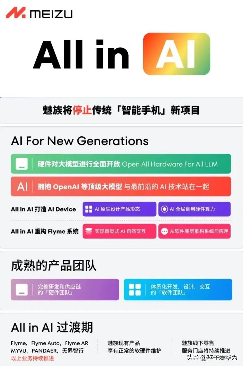 2024年,魅族宣布停止传统智能手机业务,转而投入人工智能领域,这一决策无疑是具有里程碑意义的。面对全球科技巨头纷纷布局AI技术,魅族的转型可以说是顺应了时代的潮流。