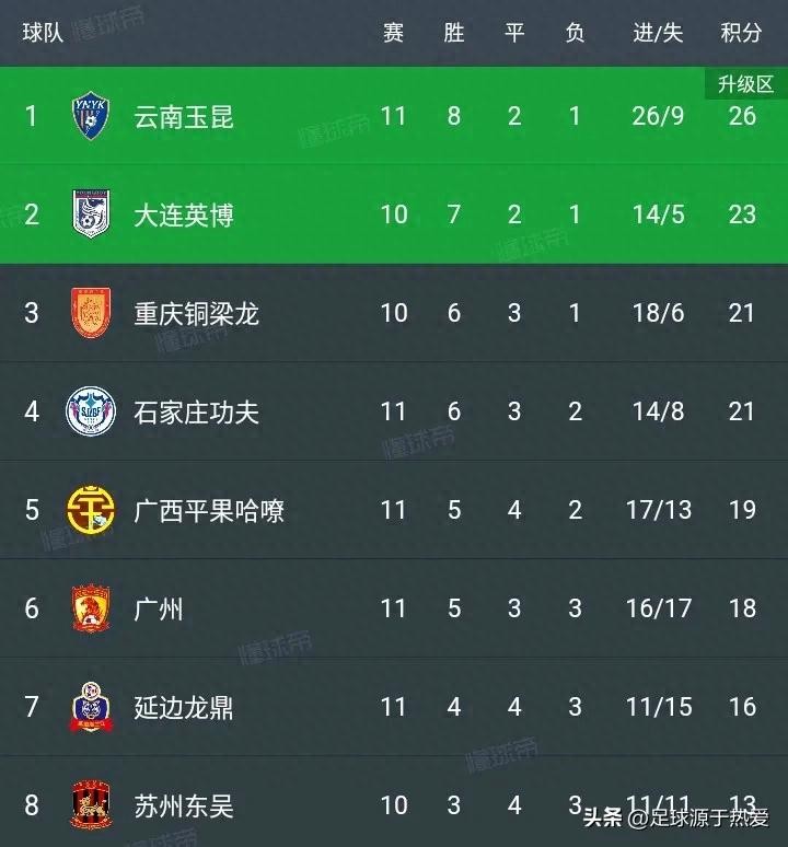 中甲最新积分榜:3-4!3-1!广西惨遭广州逆转,石家庄力克南京!