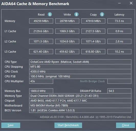 我担心是瞎猫碰上死耗子,于是又跑了AIDA64的内存测试,测试结果还是告诉我——这的确是两根跑在3600MHz的内存!